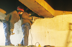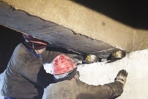 經(jīng)過漫長的等待,T梁一端被抬升到了規(guī)定高度,工人們抽取原有的橡膠支座,并換成新支座。據(jù)介紹,此次維修將更換160個橡膠支座。此外,還將針對T梁的橫隔板進(jìn)行加寬式加固,并在原有一道橫隔板的基礎(chǔ)上,在其兩側(cè)各增設(shè)一道,以增強(qiáng)橋梁整體剛性,全橋?qū)⒐苍鲈O(shè)16道橫隔板。(記者孫會芳)