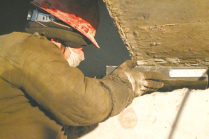 昨天上午,記者在施工現(xiàn)場看到,維修工作正緊張進(jìn)行。橋梁下方的和平路南側(cè)一個橋墩處,四五名維修人員正站在鐵架子上,在T梁與橋墩之間布設(shè)頂鎬。據(jù)介紹,罐頭盒大小的一個頂鎬可承重50噸,頂起一片千噸重的T梁需要40個頂鎬。